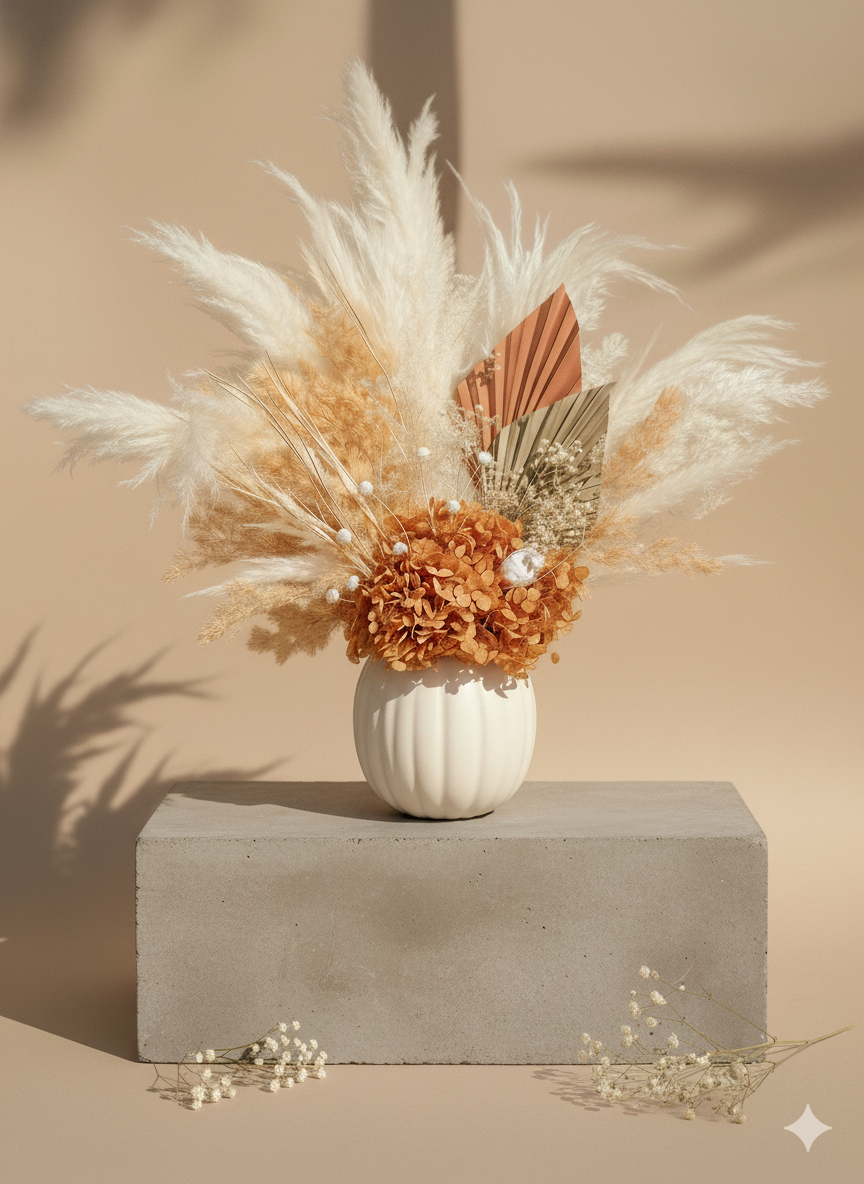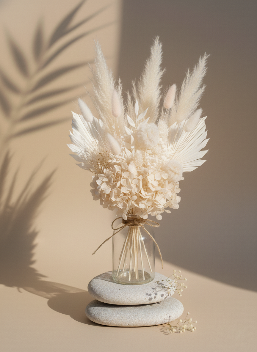 Cream & Beige Dried Flowers Vase Arrangement