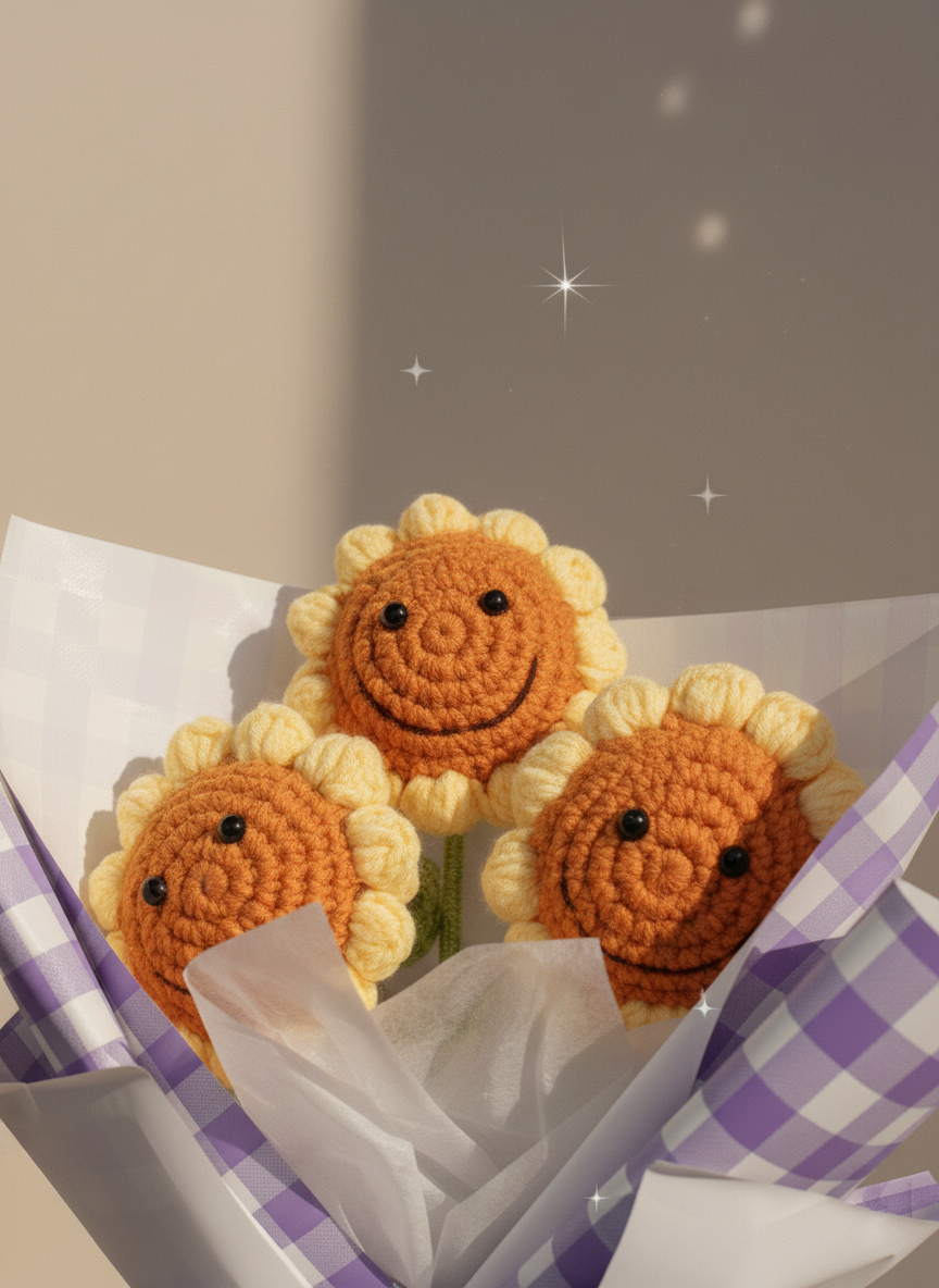 Wrapped in charming layers of plaid, this bouquet features handcrafted crochet sunflowers that will brighten anyone's day.